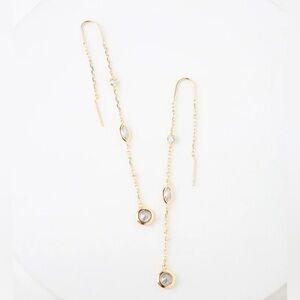 Gold Plated Sterling Silver Crystal Linear Long Threader Earrings