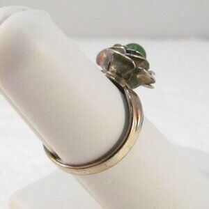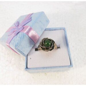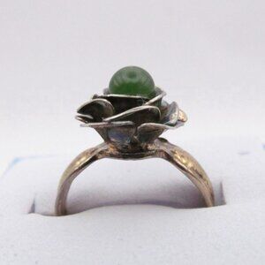 Gold Plated Sterling Silver Jade Floral Ring Signed JP Size 5.5
