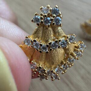 Gold Plated Stud Earrings with CZ – Fan Shape Statement