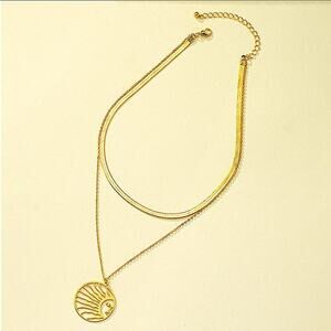 Gold plated multilayer sun hollow out charm , pendant necklace measures 15”-18”.