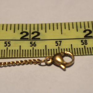 The chain is also 14 karat gold plated. The chain type is a cable chain with a lobster claw clasp