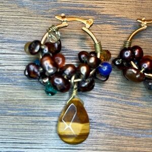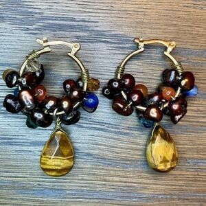 Excellent condition Beautiful teardrop hoops stone tiger eye
