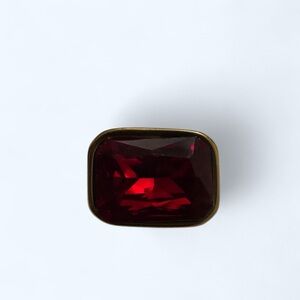 Gold Plated Titanium Steel Square Stone Ring Red Stone