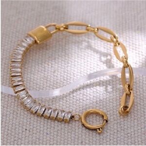 Gold Plated Waterproof Lock Chain Bling Cubic Zirconia Bracelet Sparkly New
