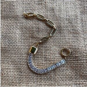 Gold Plated Waterproof Lock Chain Bling Cubic Zirconia Bracelet Sparkly