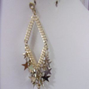 Nwt: Gold Plated diamond shaped Earrings with tiny Stars hanging from the Earrings, 4" Long