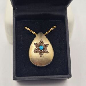 Gold Plated Teardrop Pendant Necklace Star Of David Turquoise Champagne Diamond