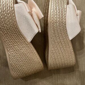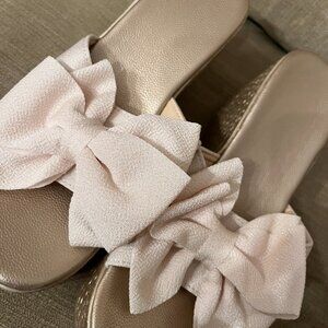 #GoldWedges #BowSandals #PlatformSlides #SummerShoes #ResortStyle #CasualChic #VacationReady #BlushAndGold #WedgeSandals #PoshStyle #BargainBeauty #ComfyAndCute #MetallicSandals #FashionFinds #PoshmarkDeals