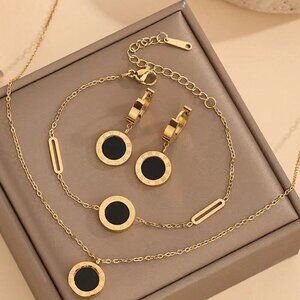 Gold Preppy Women's Roman Numeral Stainless Steel Necklace
