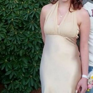 Gold prom dress, size 4, worn once. Paid $100 asking $50.