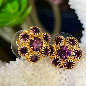Gold Purple Floral Swarovski Crystals Statement Earrings