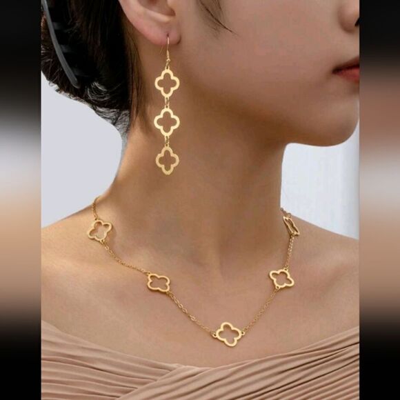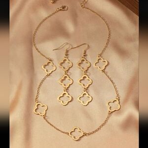 Gold Quatrefoil Clover Necklace & Earrings Set