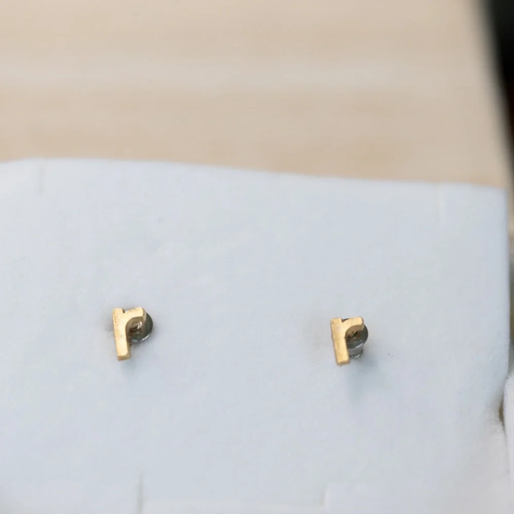 Gold R earrings