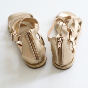 Gold strap-y flats with back zipper at heel. Used a few times for photoshoot.