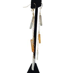 Gold Raw Quartz Crystals Dangle Chain Fashion Earrings ~ NEW