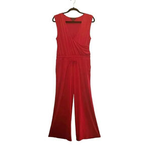 Gold Ray Jumpsuit Women's Size MP Red Polyester Sleeveless Stretchy V-Neck
