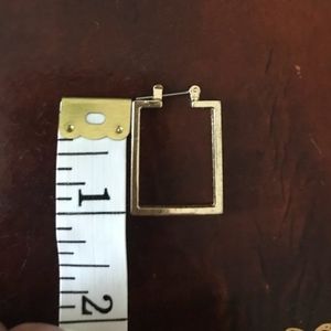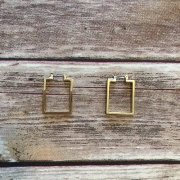 EUC Gold Geometric rectangular hoop earrings. Perfect for daily wear, great dressy or casual - material unknown. Comes from a smoke and pet free home.