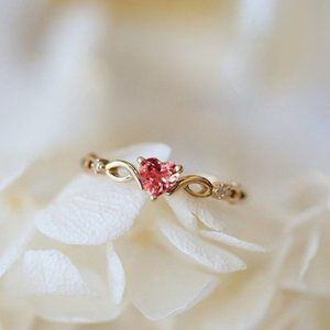 "Gold Red Heart Dainty Anillos Princess Diamond Ring for Women, VIP268