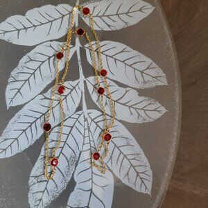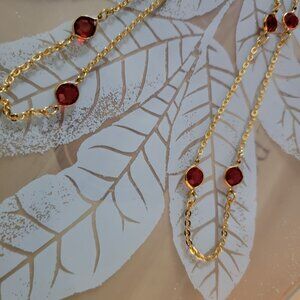 -This gold tone ruby red necklace will take you from the day to dinner with ease.