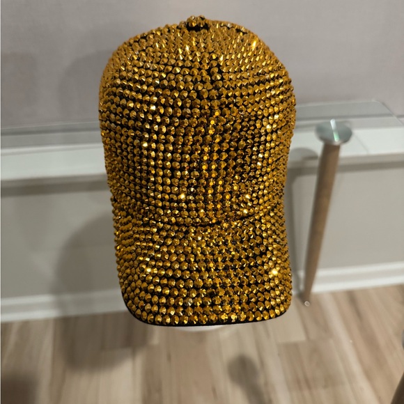 Sparkling gold rhinestone cap. Perfect for adding glam to any outfit.
