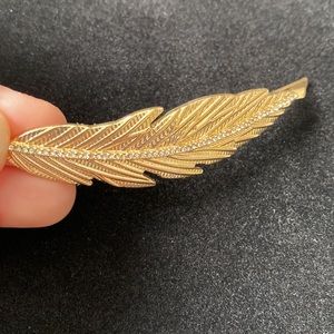 Stella & Dot gold & rhinestone feather hair pin