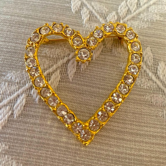 Beautiful gold & rhinestone heart pin to dress up any outfit!