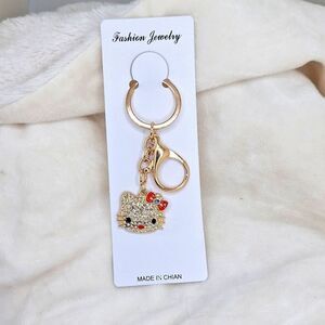 Gold Rhinestone Hello Kitty bow keychain