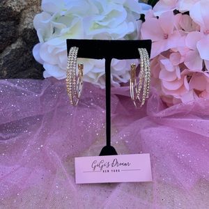 Gold Plated Rhinestone Hoops. 3 separate rings layered with white rhinestones.