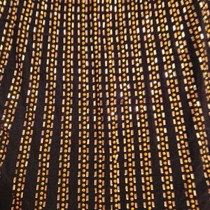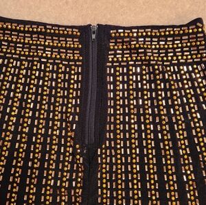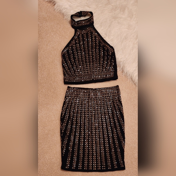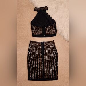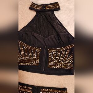 Skirt Set with black and gold rhinestones. Zipper on halter top and skirt. Beautiful, worn once.