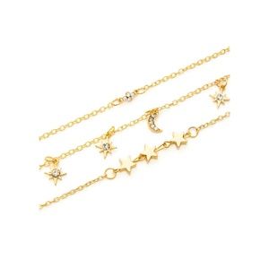 Gold Rhinestone Stars Layered Chain Necklace