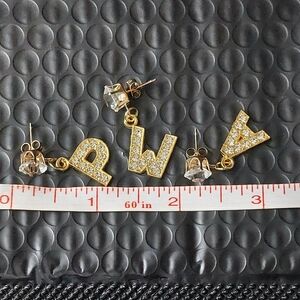 Gold Rhinestone Stud Initial Earrings R