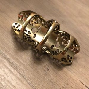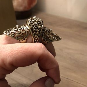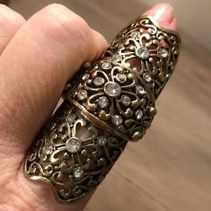 Gold / rhinestone flower pattern knuckle ring. Comfortable on fingers. Band closest to finger size 7. Worn once