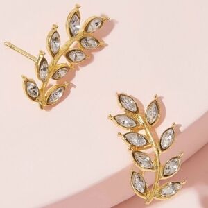 Gold Rhinestone stud Earrings clear Leaf Dainty small ear climbers new 💖 2/$30