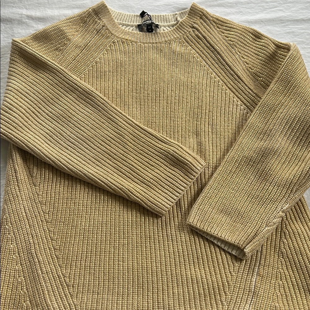 Stylish ribbed knit sweater in a gold hue. Ideal for layering.