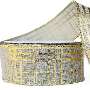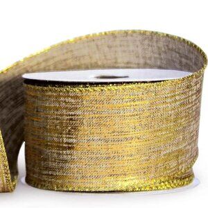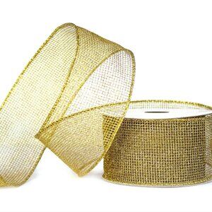 Gold Ribbon Metallic Glitter Wired 2.5 Inch Xmas Ribbons 3 Rolls 18 Yards Burlap