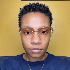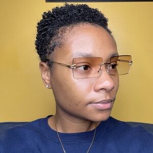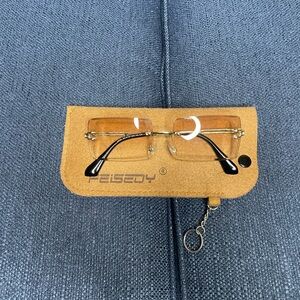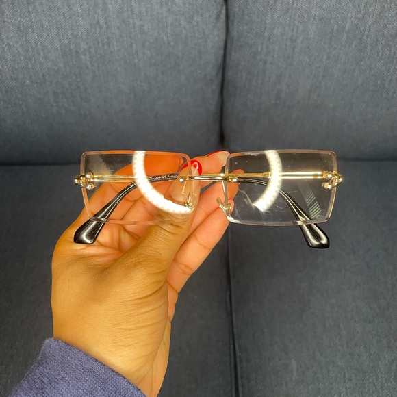 Stylish gold rimless rectangular glasses. Sleek and modern design.