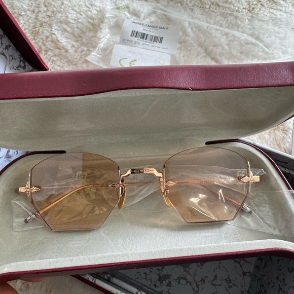 Elevate your style with these chic gold rimless sunglasses. Perfect for any occasion, they offer a sleek and modern look.