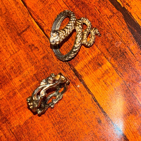 Set of two gold rings. Intricate design with textured details.