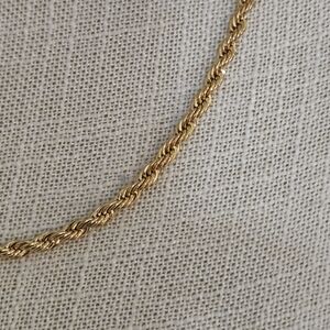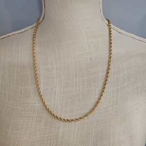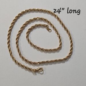24" long gold tone rope chain necklace, with lobster claw clasp. excellent quality and condition.