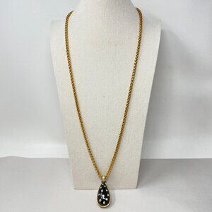 Gold Rope Chain Necklace With Reversible Teardrop Pendant Black & White Crystals