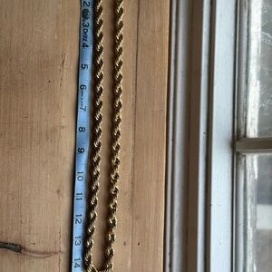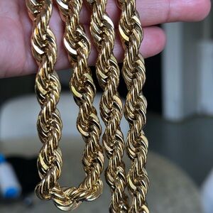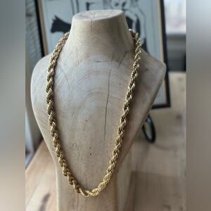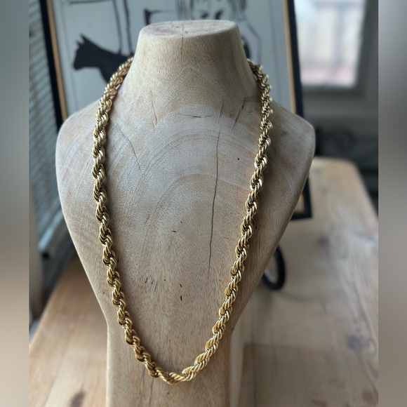 This exquisite gold necklace features a timeless twisted rope design, showcasing impeccable craftsmanship and a polished finish. Its substantial width and uniform braiding pattern make it a standout piece in any jewelry collection.