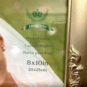 Gold roses picture frame by Decorel in good preowned condition. Has some light damage on one corner. Please see images. Some dust on back velvet. Plastic frame with real glass top.