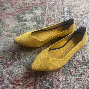 Excellent used condition gold Rothy's original Point Size 9 shoes. They fit more like a 8, but are true to size compared to my other Rothy points.
