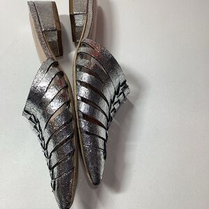 Gold & Rouge Gunmetal Woven Pointed Toe Mules Flat Sole Women’s Size EU 38