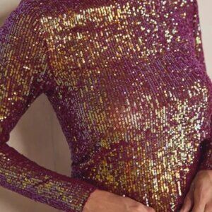 Long Sleeved Crew Neck Stunning Iridescent Sequined Statement Shirt.