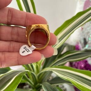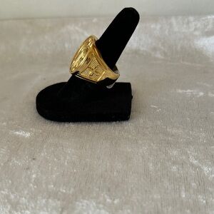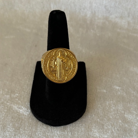 Elegant gold ring featuring a Saint Benedict medallion design.anillo de san Benito stainless steel para uso diario