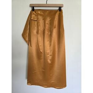 Gold Satin Wrap High Waist Midi Skirt Handmade Size Small Luxe Silky Bronze