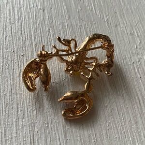 Elegant gold scorpion brooch. Features sparkling gem accents. Perfect for adding a unique touch to any outfit.