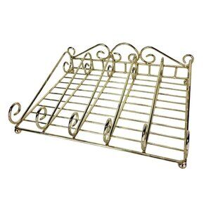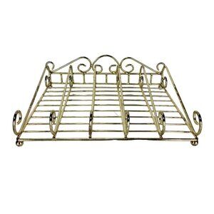 Gold Scroll Tabletop Footed Spice Rack Buffet Flatware Caddy Tray Vintage