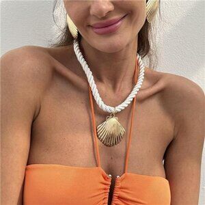 Gold Seashell Necklace and Earrings Set Women Beach Jewelry Summer Shell Jewelry